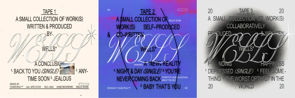 I first heard Wells* music through his Tapes series, an annual drop of a single with some supporting tracks which always had the steeziest artwork (credit to Matthew Twyman). These small bodies of work eventually were compiled with a few other tunes into the album “The Tapes Etc”. Each track brings you closer to the acceptance of a break up, with all the petty emotions along the way.